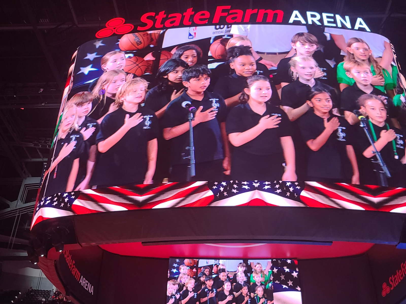 We had a fantastic time singing before the @ATLHawks game and cheering for ATL! Thank you for coming, @msbringslid & to @KarenZgonc, former @APS_SPARK parent and Owner of the amazing music school Ztunes, for the video. @SPARKpto @sara_womack @erickson_sarah_ @apsupdate #apsarts pic.twitter.com/XBerH1M2D4